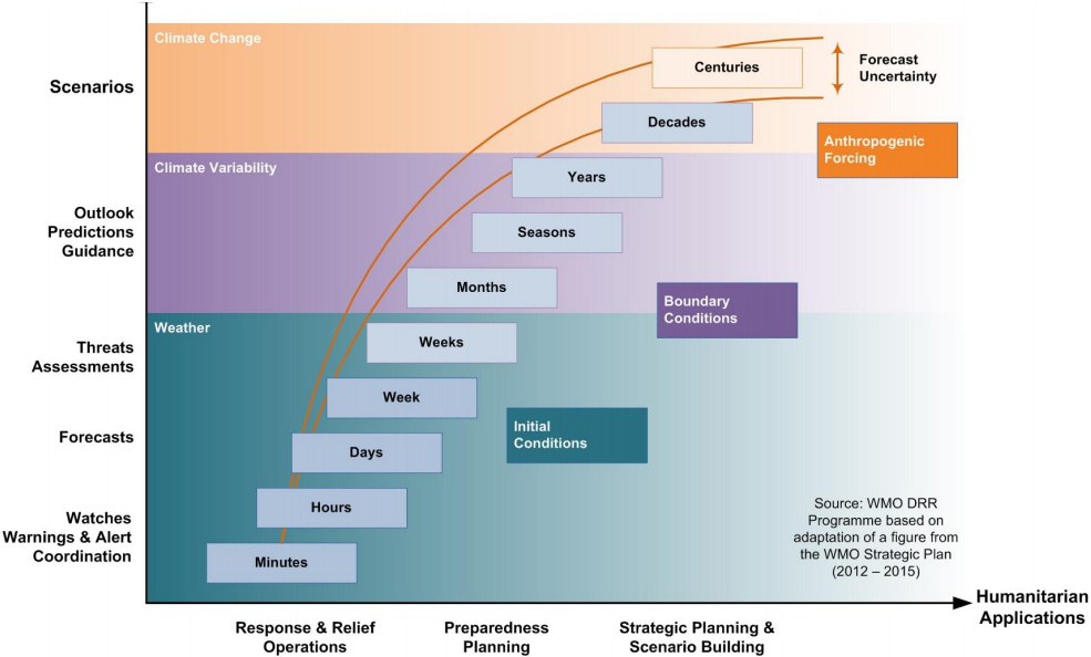 The forecast skill that exists at these time scales can be summarized by the graphic below.