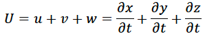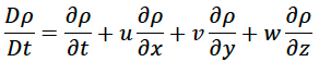 where rho is the density of the fluid. The D/Dt notation is known as the “material derivative” and can be expanded as follows